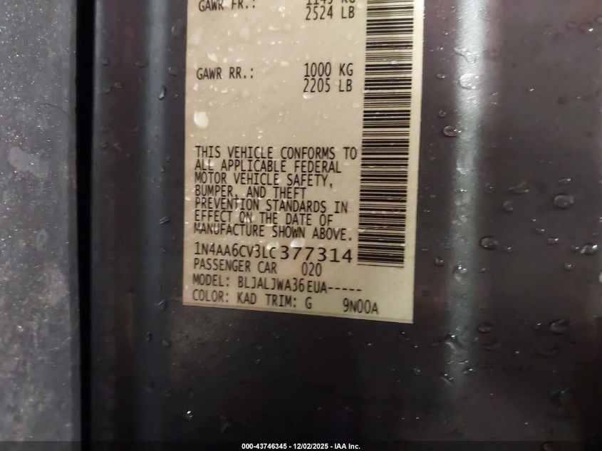 Цвет СерыйЦилиндры 6Привод Передний приводVIN 1N4AA6CV3LC377314Состояние Заводится и едет (проверено)Повреждения Передняя левая