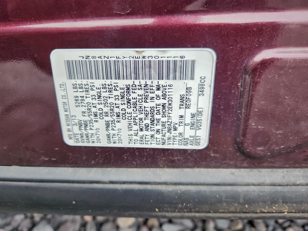 Цвет БордовыйЦилиндры 6Привод Полный приводVIN JN8AZ1FY2EW301116Состояние Заводится и едет (проверено)Повреждения По бокам AutoRIA