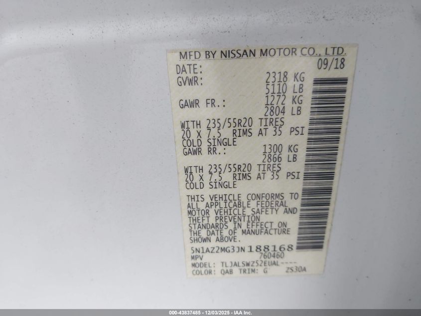 2018 NISSAN MURANO 2018 року Бензин, 3.5, Передний привод, vin - 5N1AZ2MG3JN188168 из США