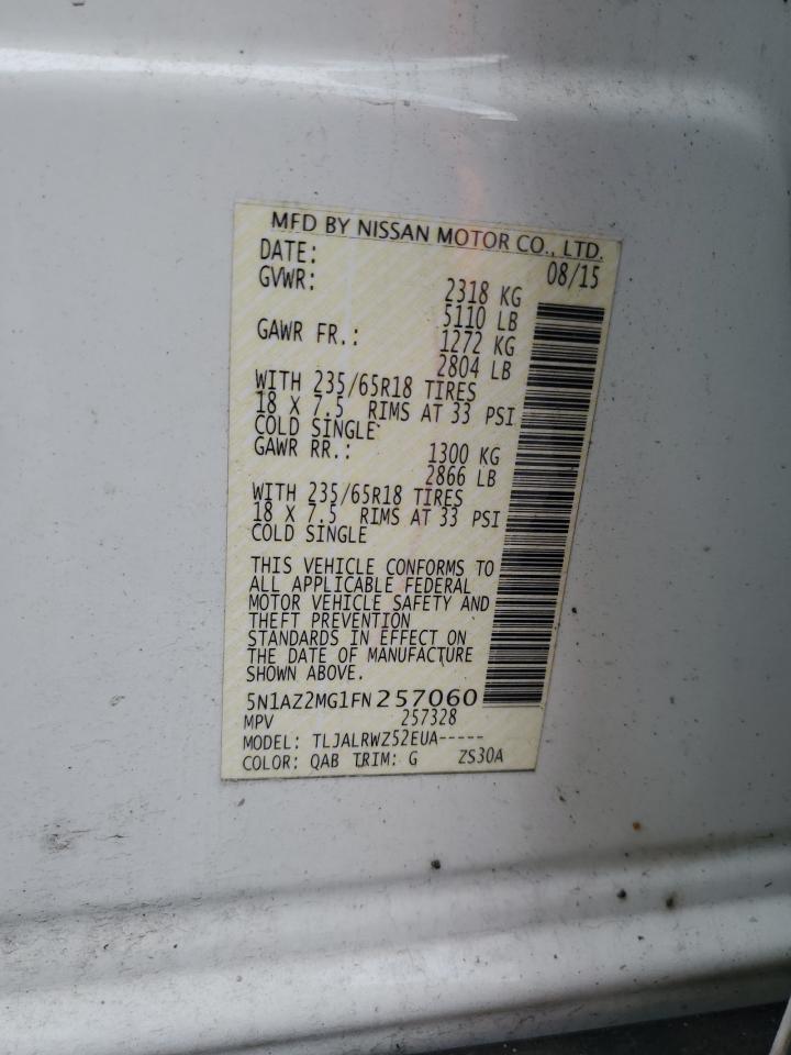 2015 NISSAN MURANO 2015 року Бензин, 3.5, , vin - 5N1AZ2MG1FN257060 из США