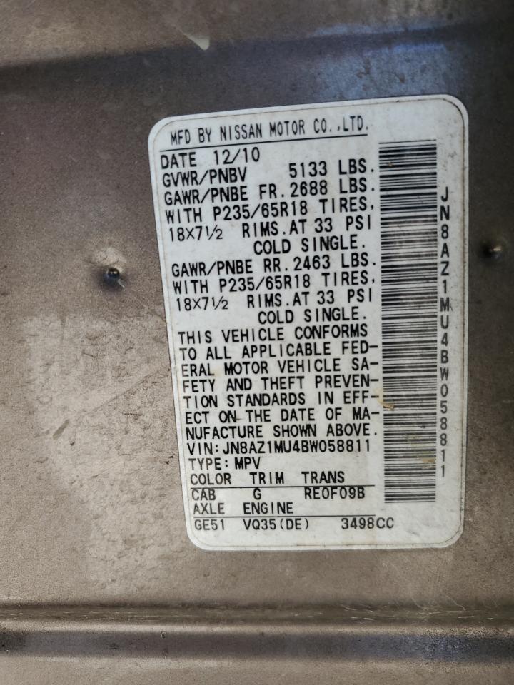 2011 NISSAN MURANO 2011 року Бензин, 3.5, , vin - JN8AZ1MU4BW058811 из США