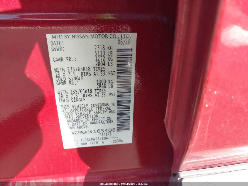 2018 NISSAN MURANO 2018 року Бензин, 3.5, Передний привод, vin - 5N1AZ2MGXJN165406 из США
