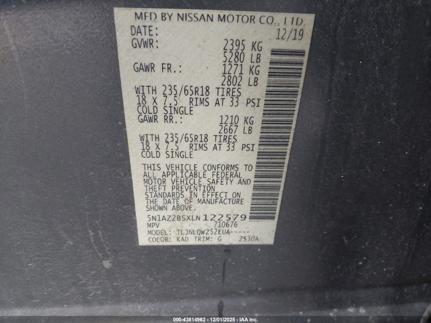 2020 NISSAN MURANO 2020 року Бензин, 3.5, Полный привод, vin - 5N1AZ2BSXLN122579 из США