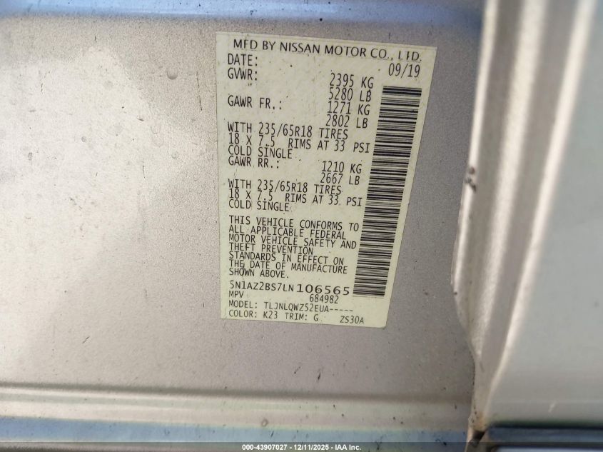2020 NISSAN MURANO 2020 року Бензин, 3.5, Полный привод, vin - 5N1AZ2BS7LN106565 из США