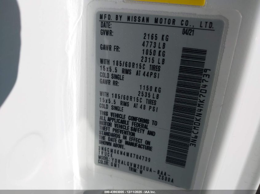 2021 NISSAN NV200 2021 року Бензин, 2.0, Передний привод, vin - 3N6CM0KN4MK704739 из США