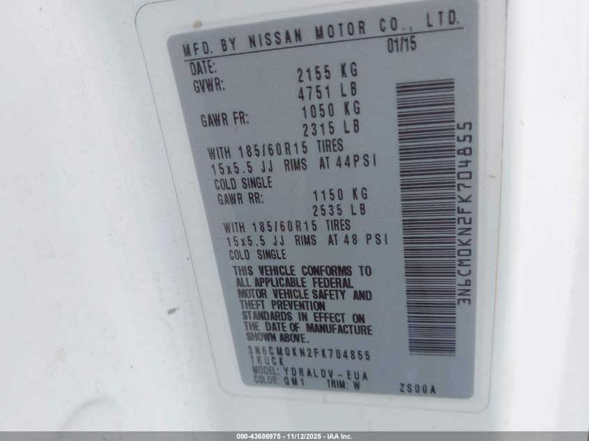 2015 NISSAN NV200 2.5S