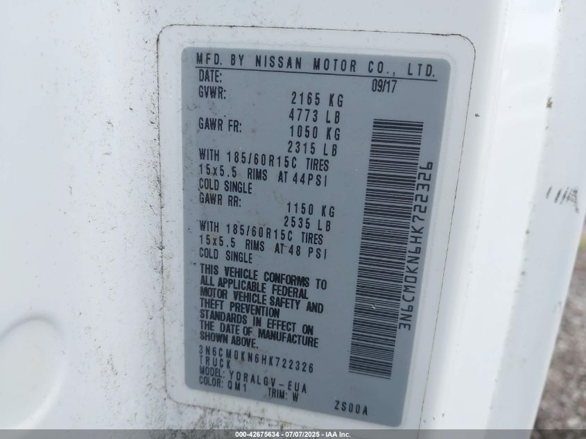 2017 NISSAN NV200 2017 року Бензин, 2.0, Передний привод, vin - 3N6CM0KN6HK722326 из США