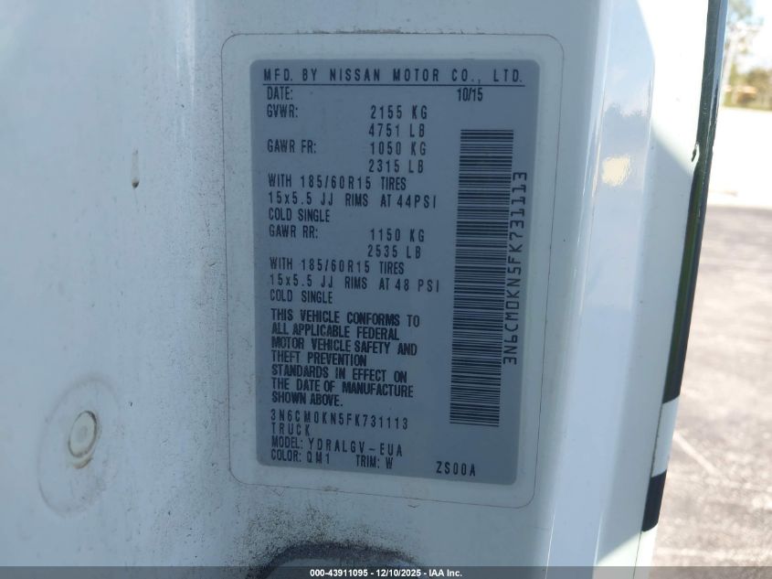 2015 NISSAN NV200 2015 року Бензин, 2.0, Передний привод, vin - 3N6CM0KN5FK731113 из США