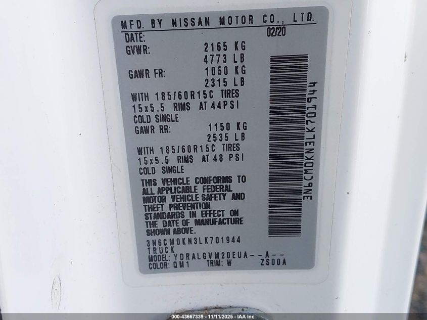 2020 NISSAN NV200 2020 року Бензин, 2.0, Передний привод, vin - 3N6CM0KN3LK701944 из США