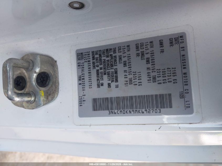 2021 NISSAN NV200 2021 року Бензин, 2.0, Передний привод, vin - 3N6CM0KN9MK692703 из США
