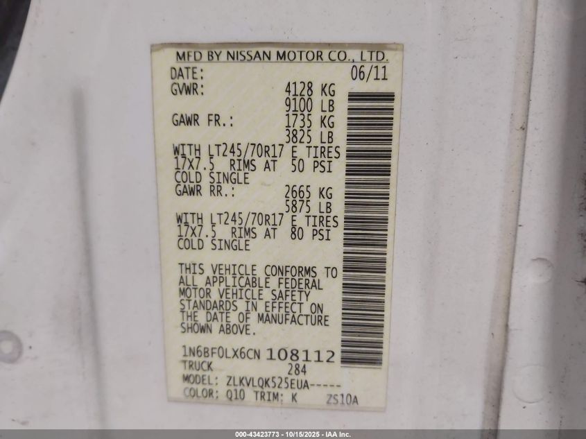 2012 NISSAN NV2500 2012 року Бензин, 4.0, Задний привод, vin - 1N6BF0LX6CN108112 из США