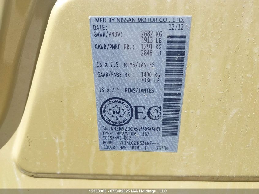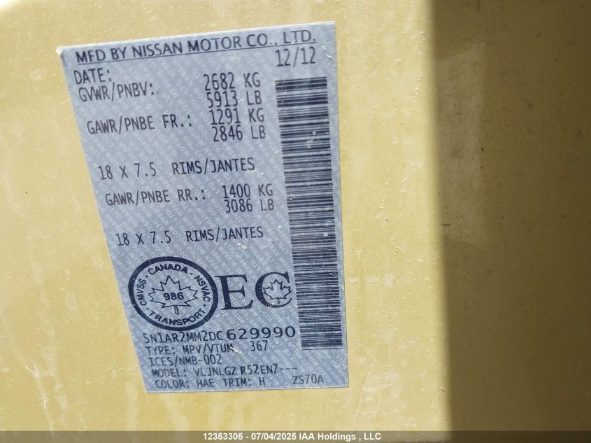 2013 NISSAN PATHFINDER 2013 року Бензин, , Полный привод, vin - 5N1AR2MM2DC629990 из США