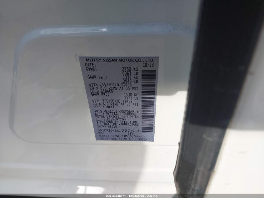 2024 NISSAN PATHFINDER 2024 року Бензин, 3.5, Полный привод, vin - 5N1DR3DK6RC222618 из США