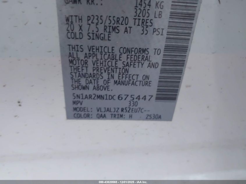 2013 NISSAN PATHFINDER 2013 року Бензин, 3.5, Передний привод, vin - 5N1AR2MN1DC675447 из США