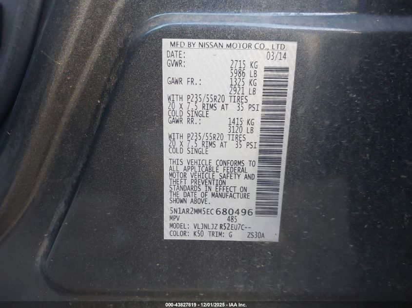 2014 NISSAN PATHFINDER 2014 року Бензин, 3.5, Полный привод, vin - 5N1AR2MM5EC680496 из США