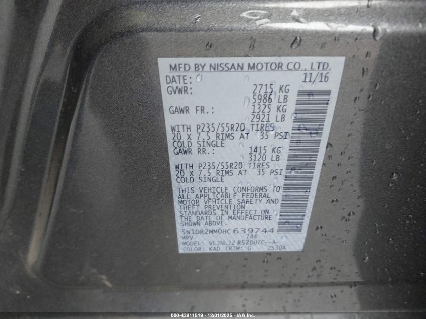 2017 NISSAN PATHFINDER 2017 року Бензин, 3.5, Полный привод, vin - 5N1DR2MM0HC639744 из США