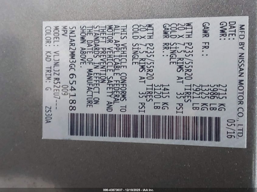 Цвет СерыйЦилиндры 6Привод Полный приводVIN 5N1AR2MM3GC654188Состояние СтационарноПовреждения Передняя или задняя AutoRIA