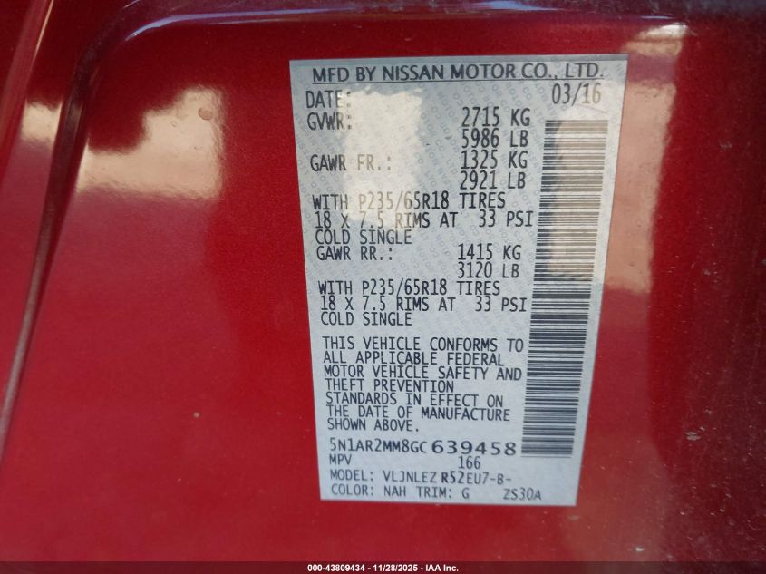 2016 NISSAN PATHFINDER 2016 року Бензин, 3.5, Полный привод, vin - 5N1AR2MM8GC639458 из США