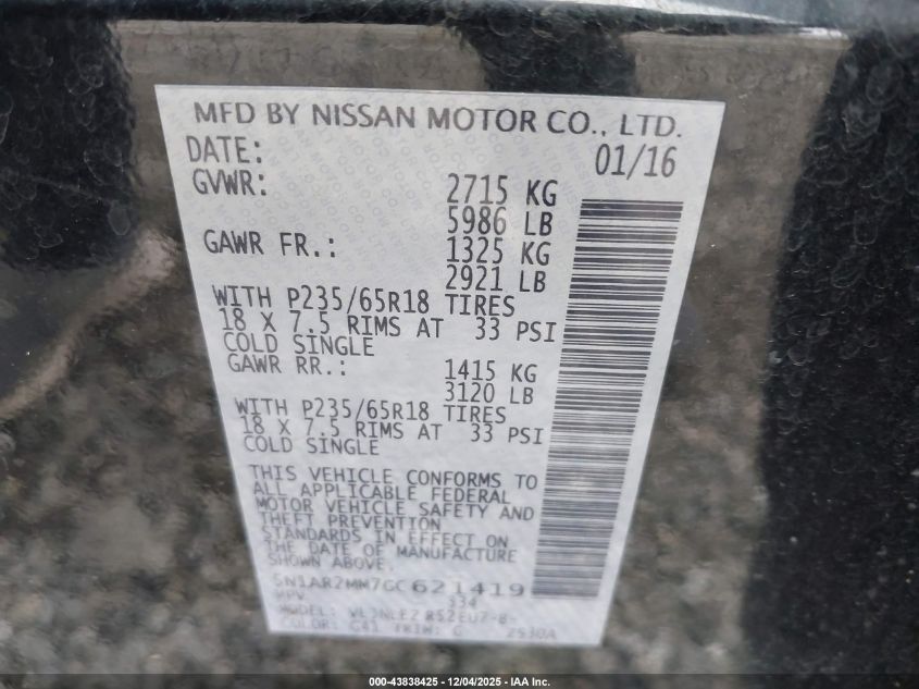 2016 NISSAN PATHFINDER 2016 року Бензин, 3.5, Полный привод, vin - 5N1AR2MM7GC621419 из США