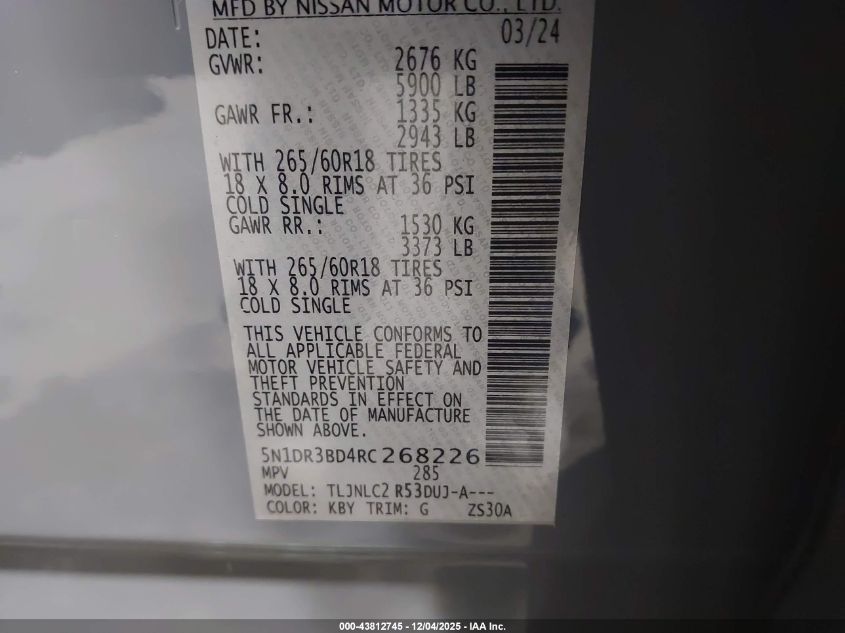 2024 NISSAN PATHFINDER 2024 року Бензин, 3.5, Полный привод, vin - 5N1DR3BD4rc268226 из США