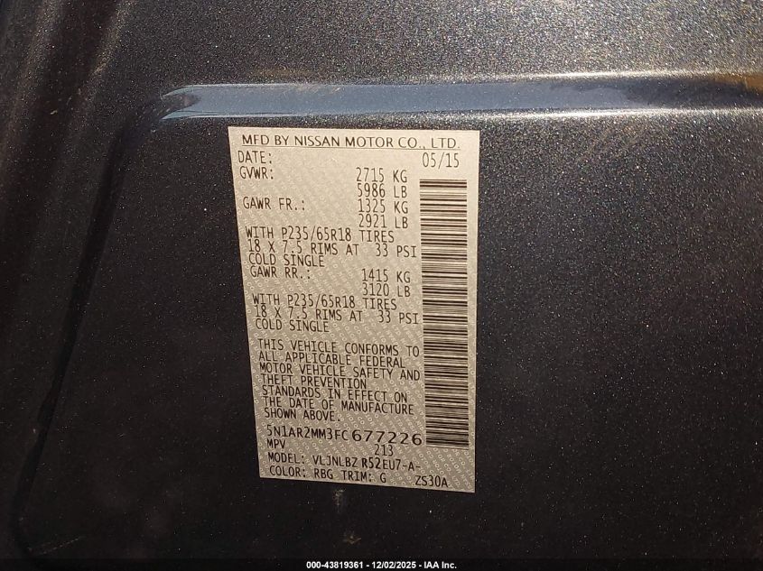 2015 NISSAN PATHFINDER 2015 року Бензин, 3.5, Полный привод, vin - 5N1AR2MM3FC677226 из США