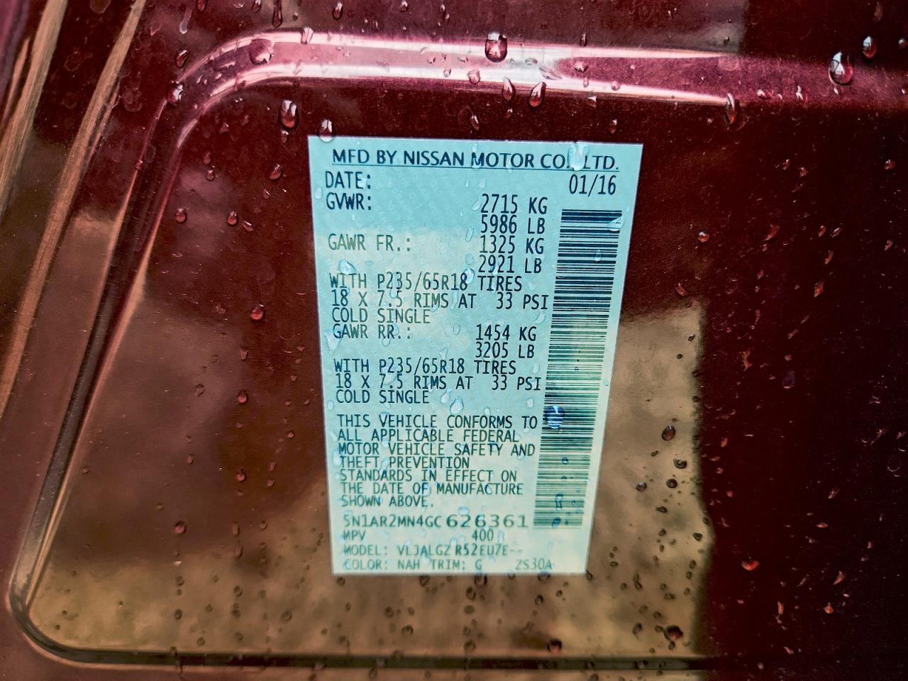 Цвет КрасныйЦилиндры 6VIN 5N1AR2MN4GC626361Состояние Заводится и едет (проверено)Повреждения Задняя AutoRIA
