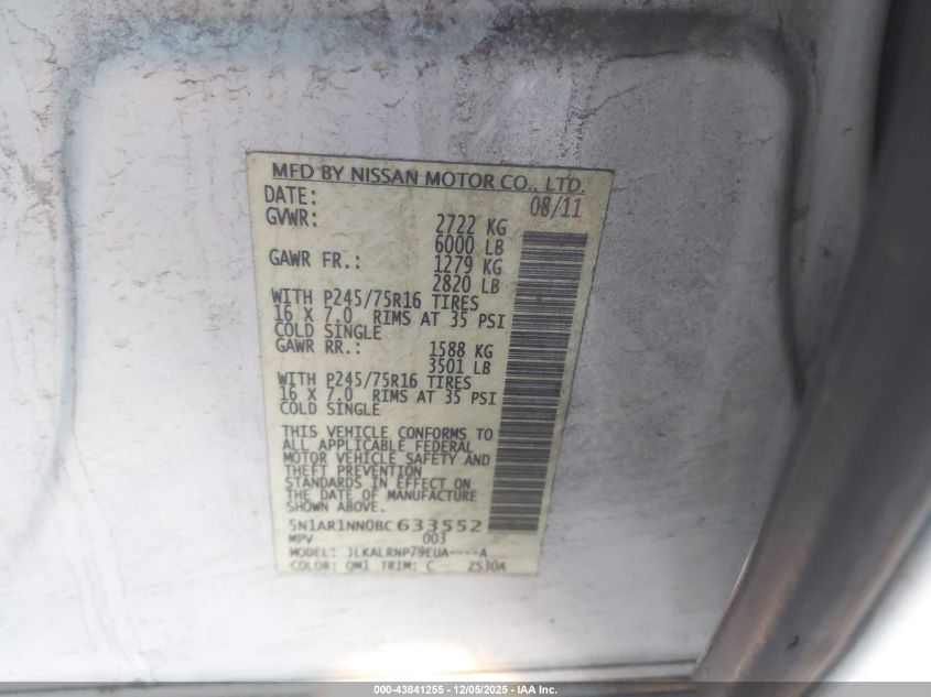 2011 NISSAN PATHFINDER 2011 року Бензин, 4.0, , vin - 5N1AR1NN0BC633552 из США
