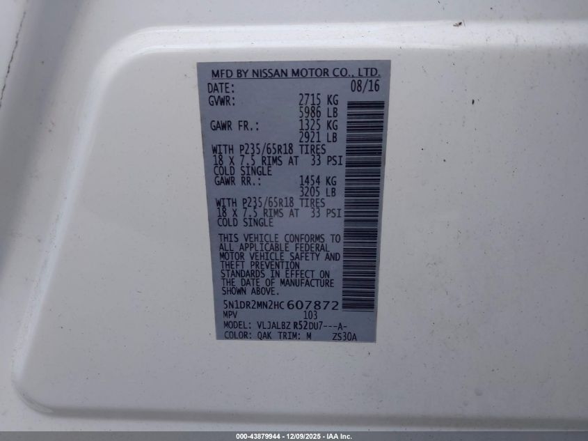 2017 NISSAN PATHFINDER 2017 року Бензин, 3.5, Передний привод, vin - 5N1DR2MN2HC607872 из США