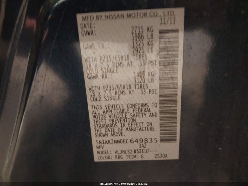 2014 NISSAN PATHFINDER 2014 року Бензин, 3.5, Полный привод, vin - 5N1AR2MM0EC649835 из США