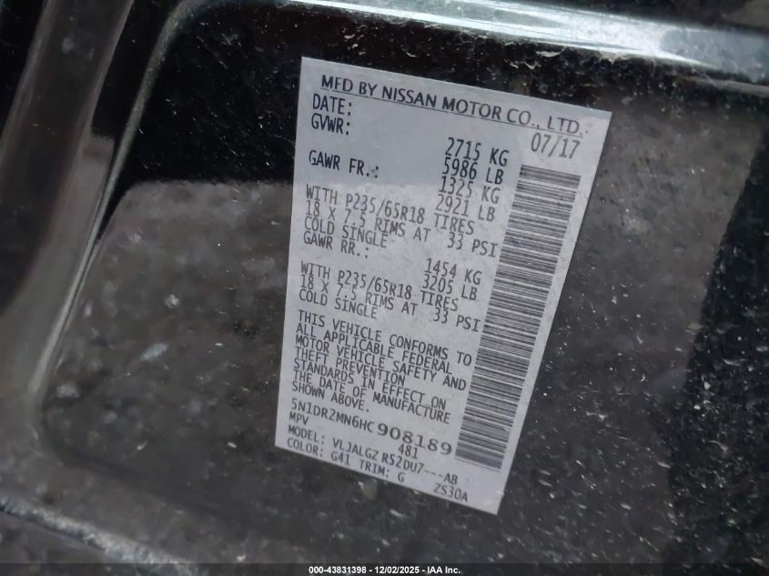2017 NISSAN PATHFINDER 2017 року Бензин, 3.5, Передний привод, vin - 5N1DR2MN6HC908189 из США
