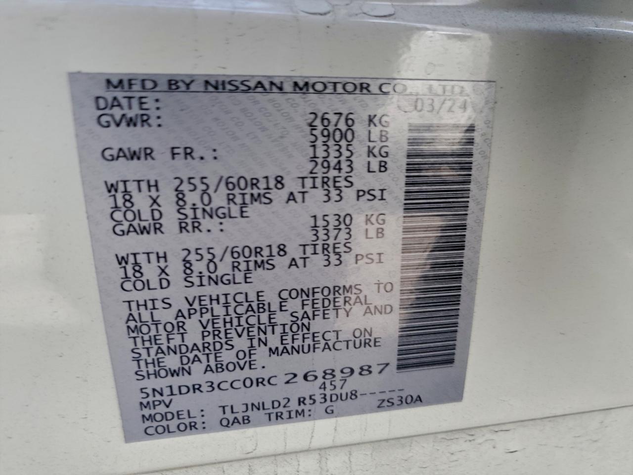 2024 NISSAN PATHFINDER 2024 року Бензин, 3.5, 4x4 с передним приводом, vin - 5N1DR3CC0RC268987 из США