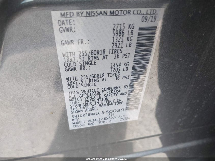 2020 NISSAN PATHFINDER 2020 року Бензин, 3.5, Передний привод, vin - 5N1DR2BNXLC580089 из США