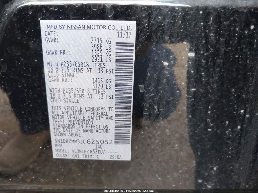 2018 NISSAN PATHFINDER 2018 року Бензин, 3.5, Полный привод, vin - 5N1DR2MM3JC625052 из США