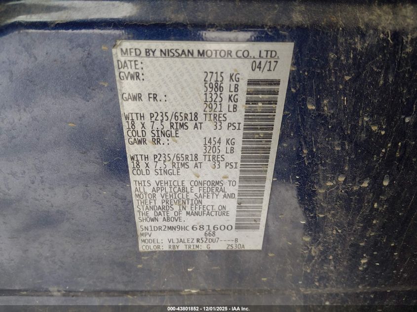 2017 NISSAN PATHFINDER S