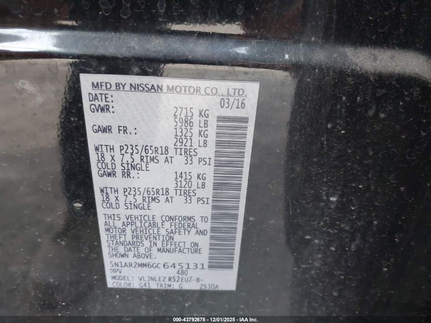 2016 NISSAN PATHFINDER 2016 року Бензин, 3.5, Полный привод, vin - 5N1AR2MM6GC645131 из США