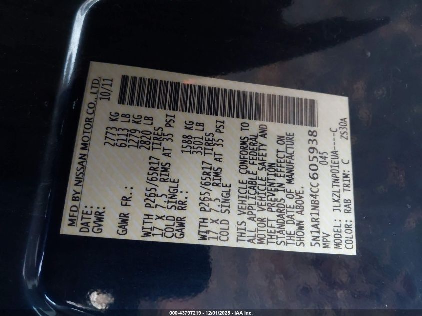2012 NISSAN PATHFINDER 2012 року Бензин, 4.0, Полный привод, vin - 5N1AR1NB4CC605938 из США