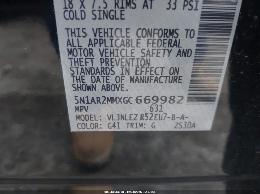 Цвет ЧерныйЦилиндры 6Привод Полный приводVIN 5N1AR2MMXGC669982Состояние Заводится и едет (проверено)Повреждения Передняя правая AutoRIA
