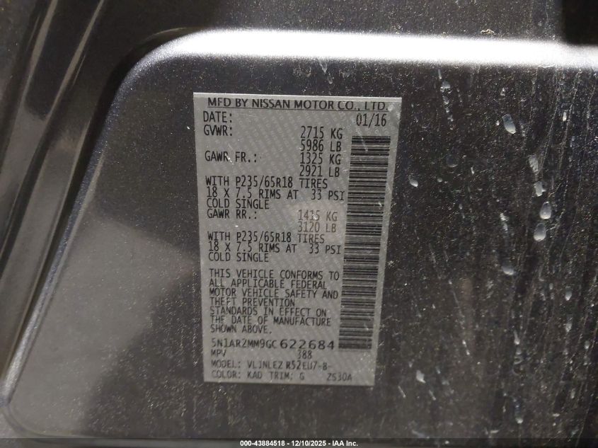 2016 NISSAN PATHFINDER S