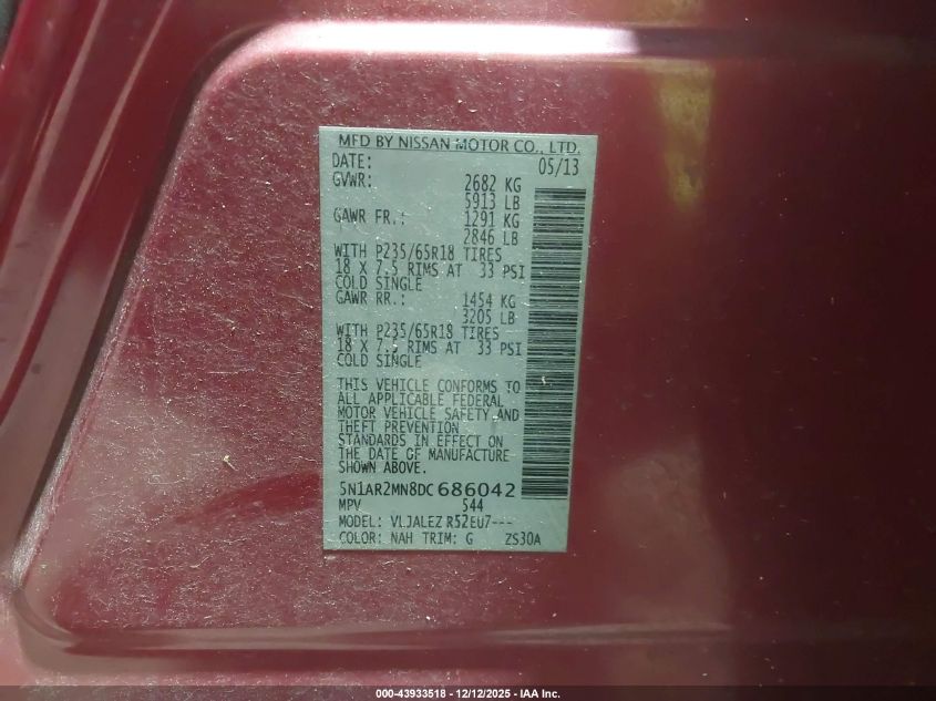 2013 NISSAN PATHFINDER 2013 року Бензин, 3.5, Передний привод, vin - 5N1AR2MN8DC686042 из США