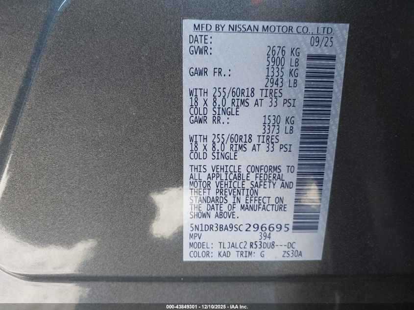 2025 NISSAN PATHFINDER 2025 року Бензин, 3.5, Передний привод, vin - 5N1DR3BA9SC296695 из США