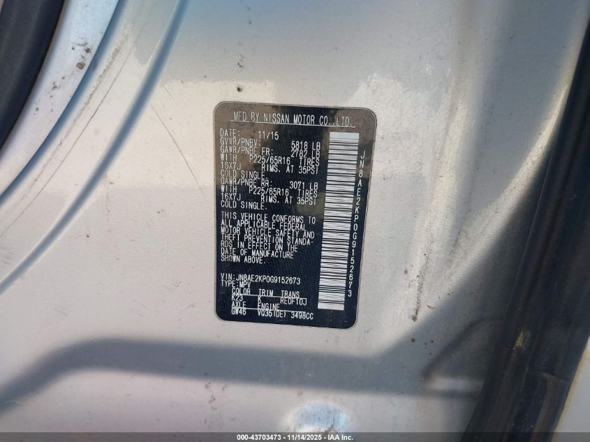 2016 NISSAN QUEST 2016 року Бензин, 3.5, Передний привод, vin - JN8AE2KP0G9152673 из США