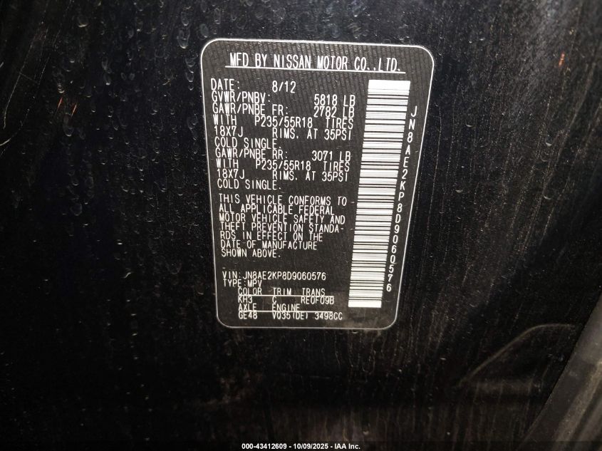 Цвет ЧерныйЦилиндры 6Привод Передний приводVIN JN8AE2KP8D9060576Состояние Заводится и едет (проверено)Повреждения Передняя левая AutoRIA