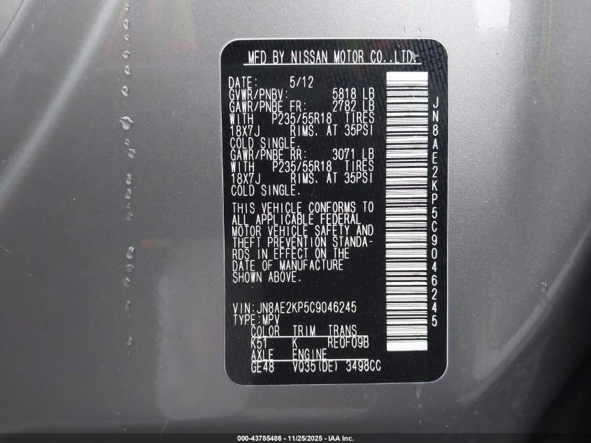 2012 NISSAN QUEST 2012 року Бензин, 3.5, Передний привод, vin - JN8AE2KP5C9046245 из США