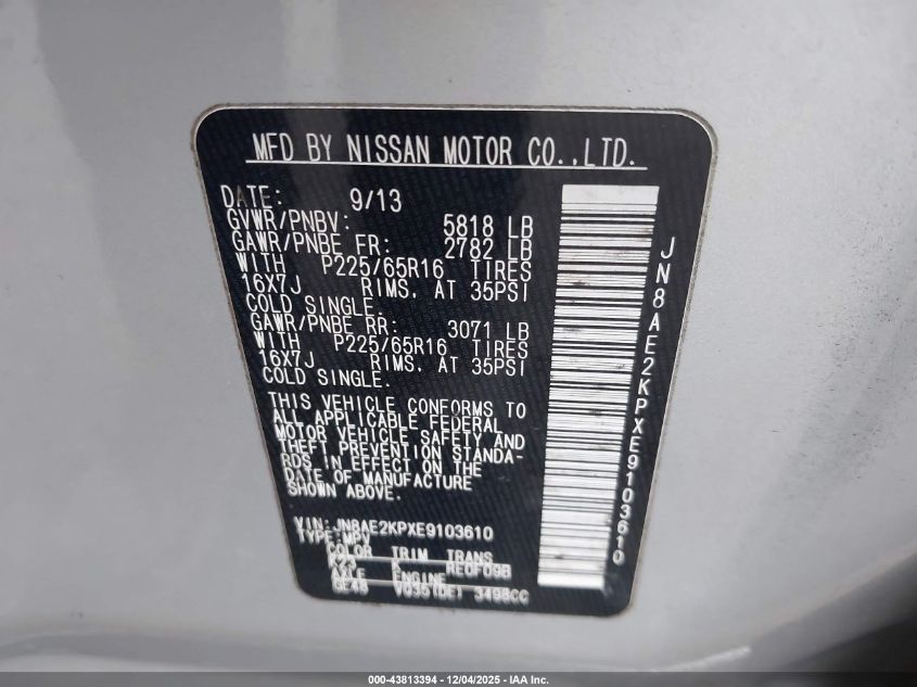 2014 NISSAN QUEST 2014 року Бензин, 3.5, Передний привод, vin - JN8AE2KPXE9103610 из США