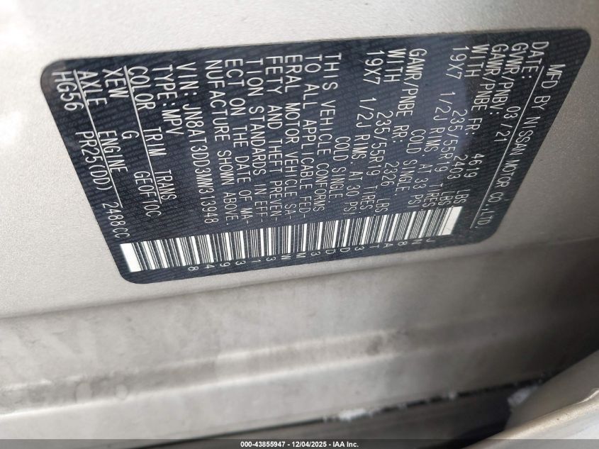 2021 NISSAN ROGUE 2021 року Бензин, 2.5, Полный привод, vin - JN8AT3DD3MW313948 из США