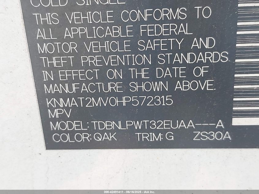Цвет БелыйЦилиндры 4Привод Полный приводVIN KNMAT2MV0HP572315Состояние Заводится и едет (проверено)Повреждения Правая сторонаДата аукциона 2025-12-09 AutoRIA