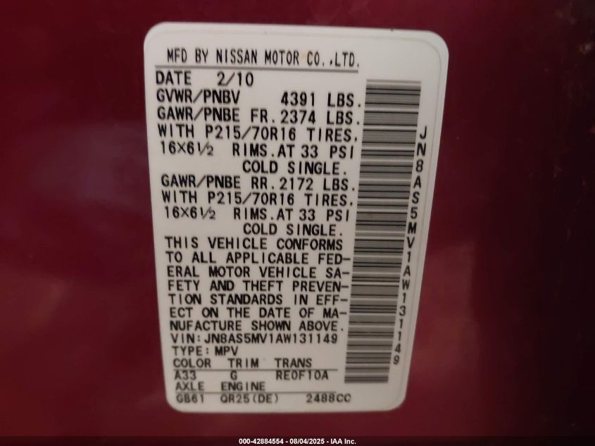 2010 NISSAN ROGUE 2010 року Бензин, 2.5, Полный привод, vin - JN8AS5MV1AW131149 из США