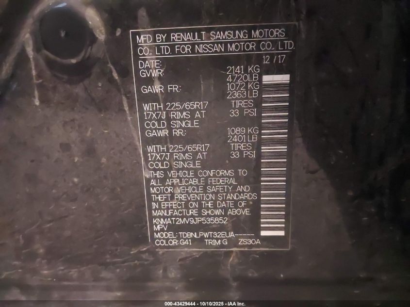2018 NISSAN ROGUE 2018 року Бензин, 2.5, Полный привод, vin - KNMAT2MV9JP535852 из США