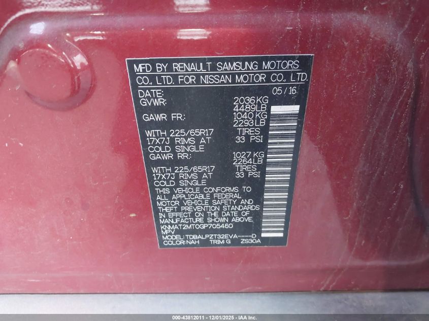 2016 NISSAN ROGUE S