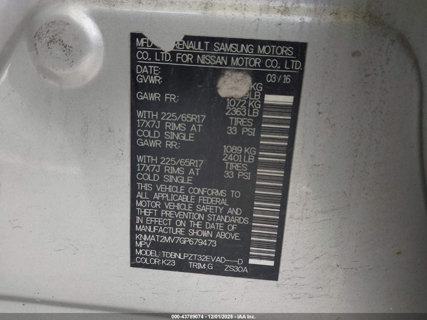 2016 NISSAN ROGUE 2016 року Бензин, 2.5, Полный привод, vin - KNMAT2MV7GP679473 из США